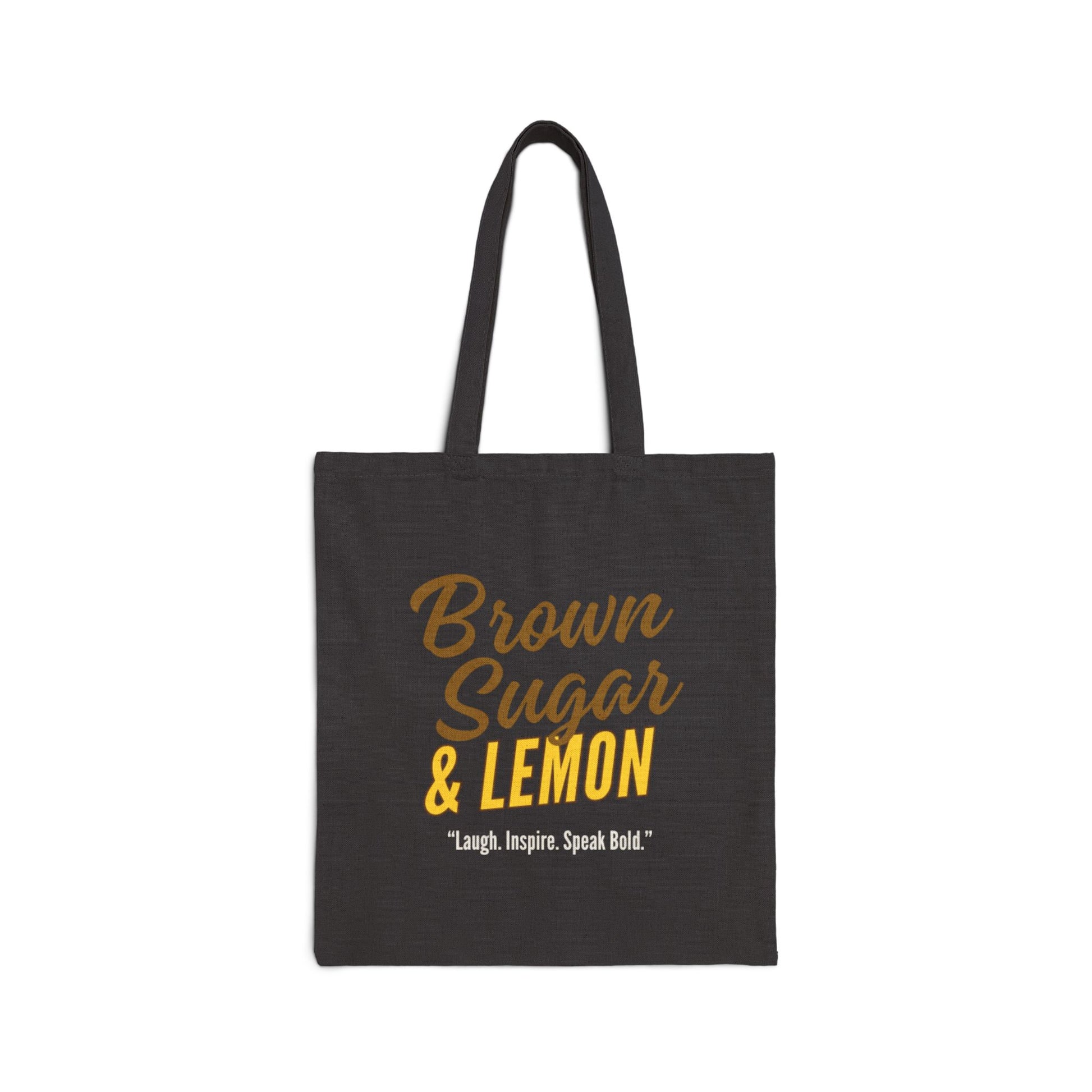 Brown Sugar & Lemon 100% recyclable black canvas tote, perfect for eco-conscious individuals looking for a stylish and functional bag. Ideal for grocery shopping, beach outings, or carrying everyday essentials. Relevant for Earth Day, World Environment Day, and everyday use.
