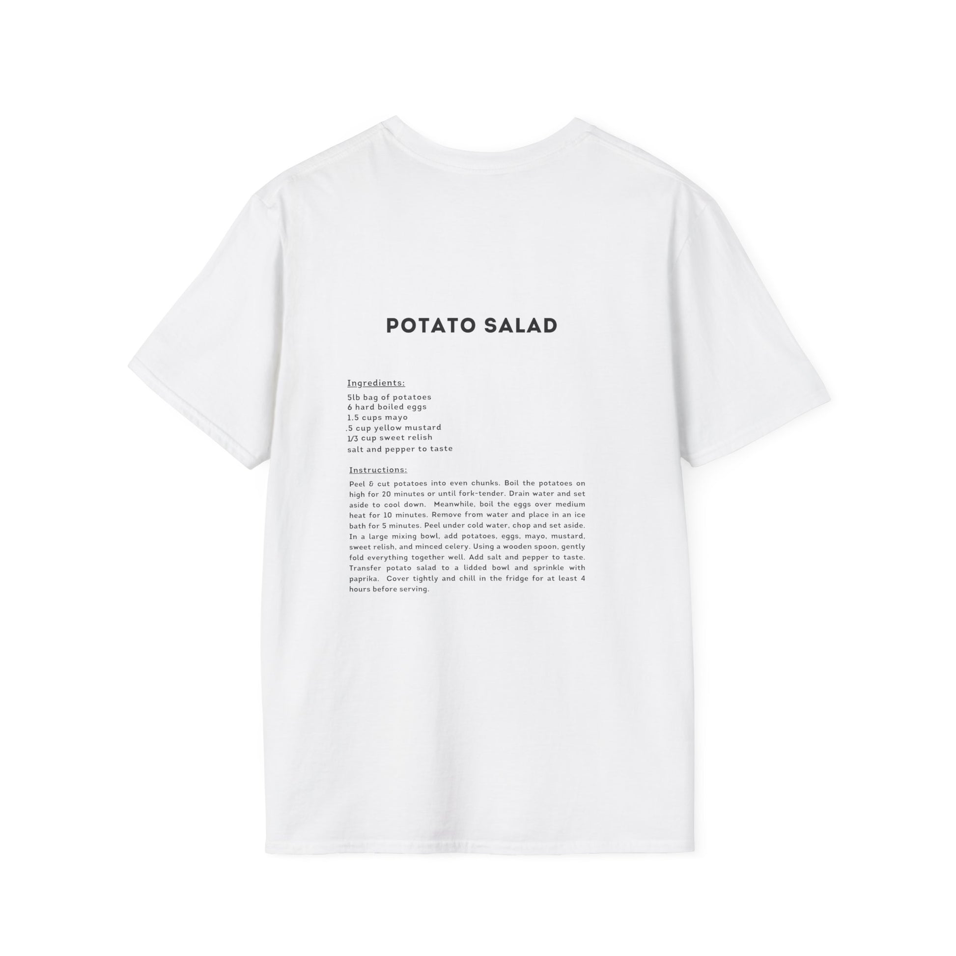 This statement T-Shirt featuring the phrase 'I don't eat everybody's potato salad' on the front is a fun and unique addition to any wardrobe. With a recipe on the back, it's perfect for those who exudes a fun and quirky vibe and enjoy unique and humorous clothing. It can be worn casually for a relaxed look or paired with accessories for a more stylish outfit. Ideal for anyone who loves food and cooking humor, suitable for everyday wear or as a conversation starter at gatherings, BBQs, or food-related events.